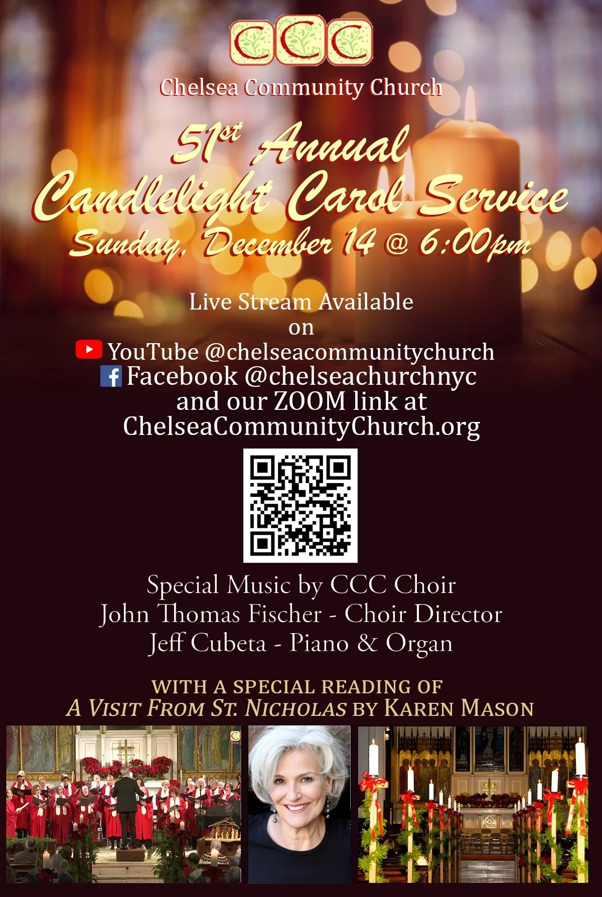 Welcome to Chelsea Community Church (CCC) where we have been a home for people of all faiths and uncertain faith for more than 47 years. Founded in 1975 by a group of Chelsea residents, CCC is a lay-led non-denominational Christian Church. Its members created CCC to meet the needs of a diverse group who share a desire to explore faith and spirituality without dogmas, creeds or denominational affiliation.